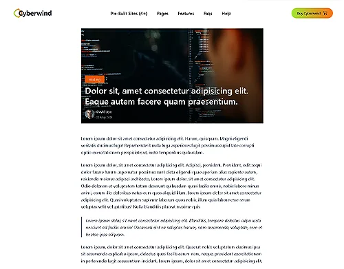 Cyberwind is a multi-purpose HTML template designed with Tailwind CSS to quickly create websites and landing pages with ready-to-use templates.